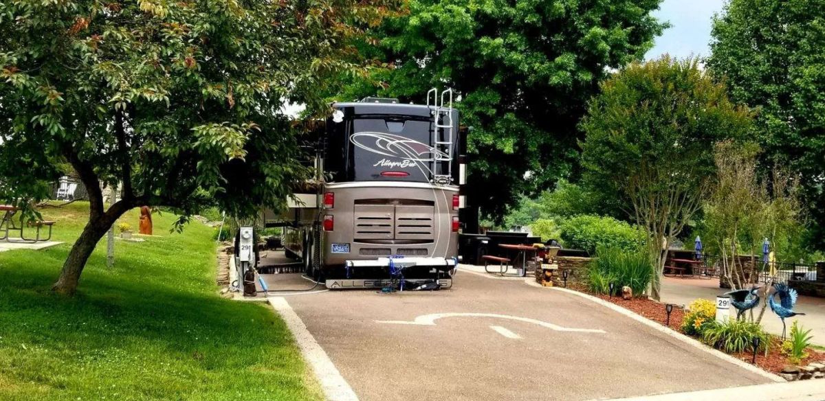 Resort-a beautifully landscaped, oversized pull-in motorhome lot that offers a front-row view of the