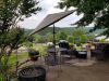 * Two rectangular dining tables with umbrellas