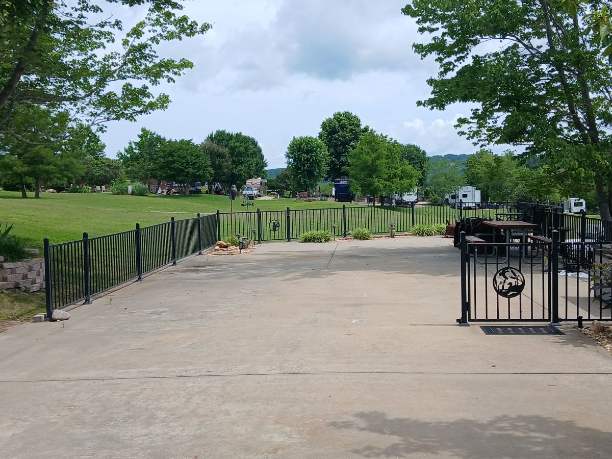 One of the most spectacular Lake views the resort has to offer, unobstructed sunsets await! Oversized lot with gorgeous landscaping kept simple for easy maintenance. Green Space behind the lot offers fewer neighbors and creates a sense of additional space. Perimeter fence is perfect for containment of curious pets or young children. Furnishings on the lot will convey. Amenities are endless with 2 pools, activity center, disc golf, courtesy dock access and boat launch on site. 30 minutes to Branson and easy walk to lake front access.